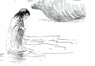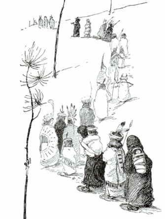 I recently came across the following pukwudgie illustrations by the writer and artist L.J. Bridgman, who’s known for publishing children’s literature in magazines at the end of the nineteenth century. Bridgman drew the images to illustrate a story about the pukwudgies’ winter migration to the shores of Lake Superior (gichi-gami in the Ojibwe language), where they’d hibernate in shells.